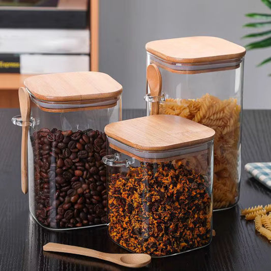 Square Glass Jar With Bamboo Lid